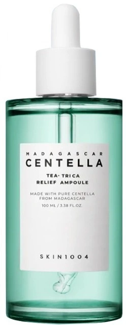 SKIN1004 Madagascar Centella Tea-Trica Relief Ampul son derece yatıştırıcı bileşenlere sahip komedojenik olmayan bir formül, cildi sakinleştirmeyi, iltihabı ve tahrişi hafifletmeyi ve maksimum rahatlama sağlamayı amaçlamaktadır.